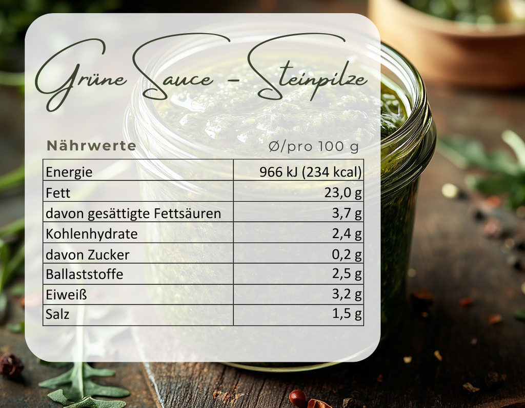 Im Mittelpunkt steht der einzigartige Geschmack handverlesener, italienischer Steinpilze, die in den unberührten Wäldern Italiens gedeihen. Diese hochwertigen Pilze zeichnen sich durch ihren intensiven, erdigen Geschmack aus, der in jedem Löffel dieser Soße spürbar wird. Sie verleihen der Soße ihre außergewöhnliche Tiefe und ein herrlich nussiges Aroma, das jeden Gaumen verführt.