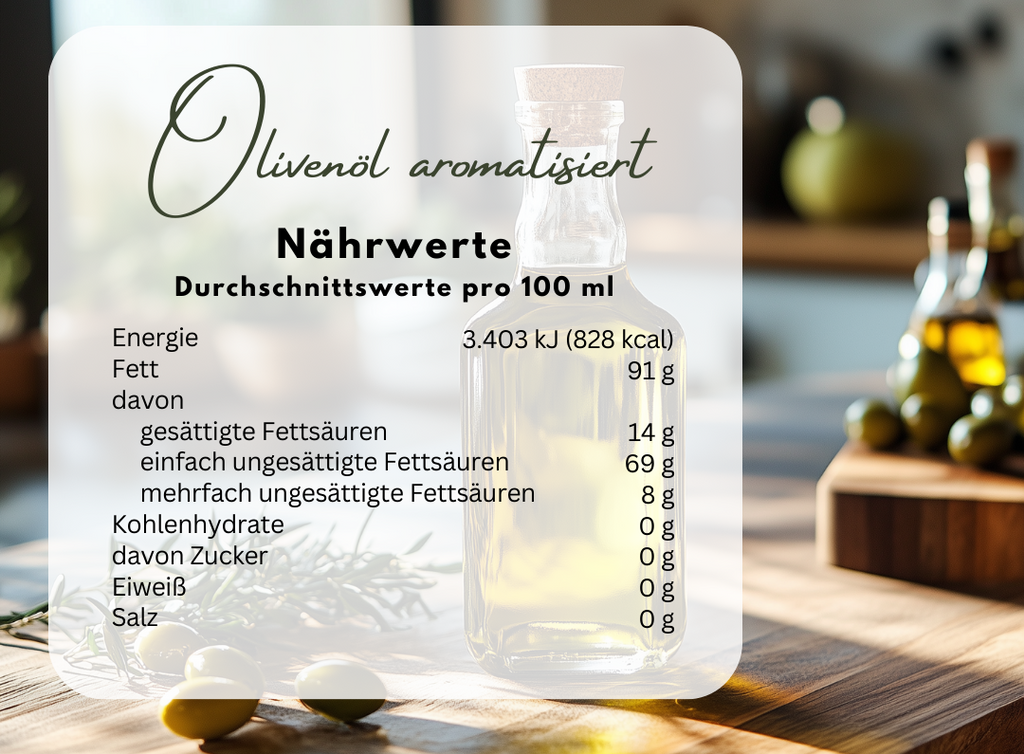Zutaten: Extra natives Olivenöl (98 %); Aroma (2%)